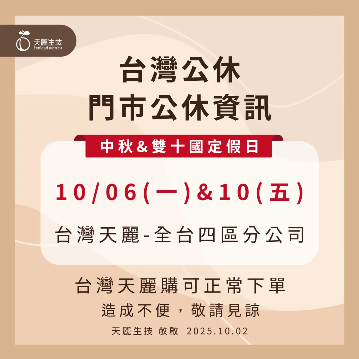 2025中秋&雙十公休公告