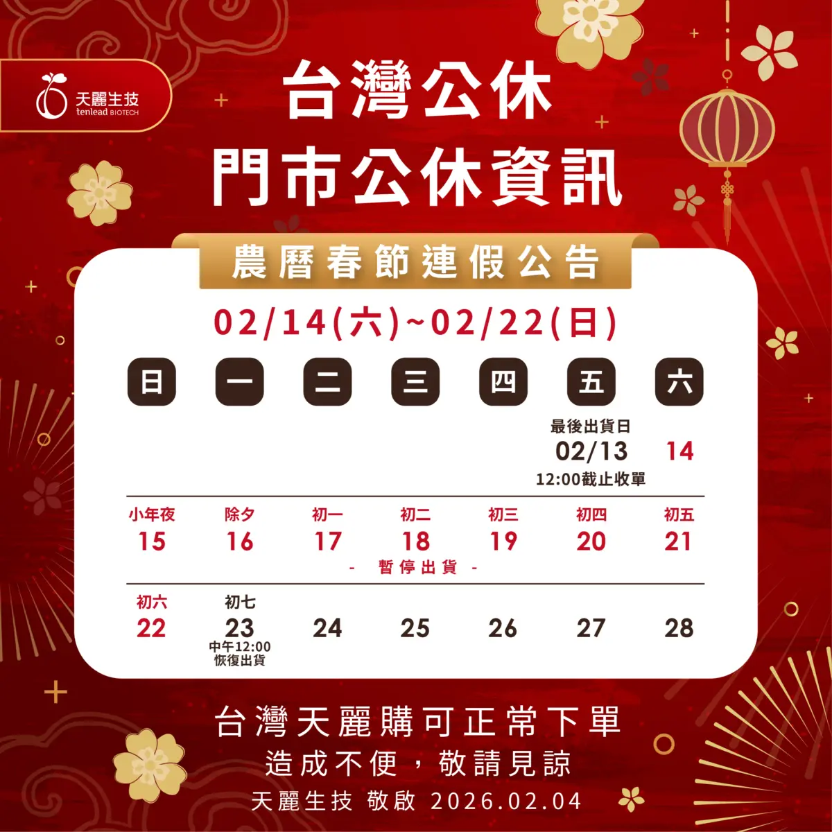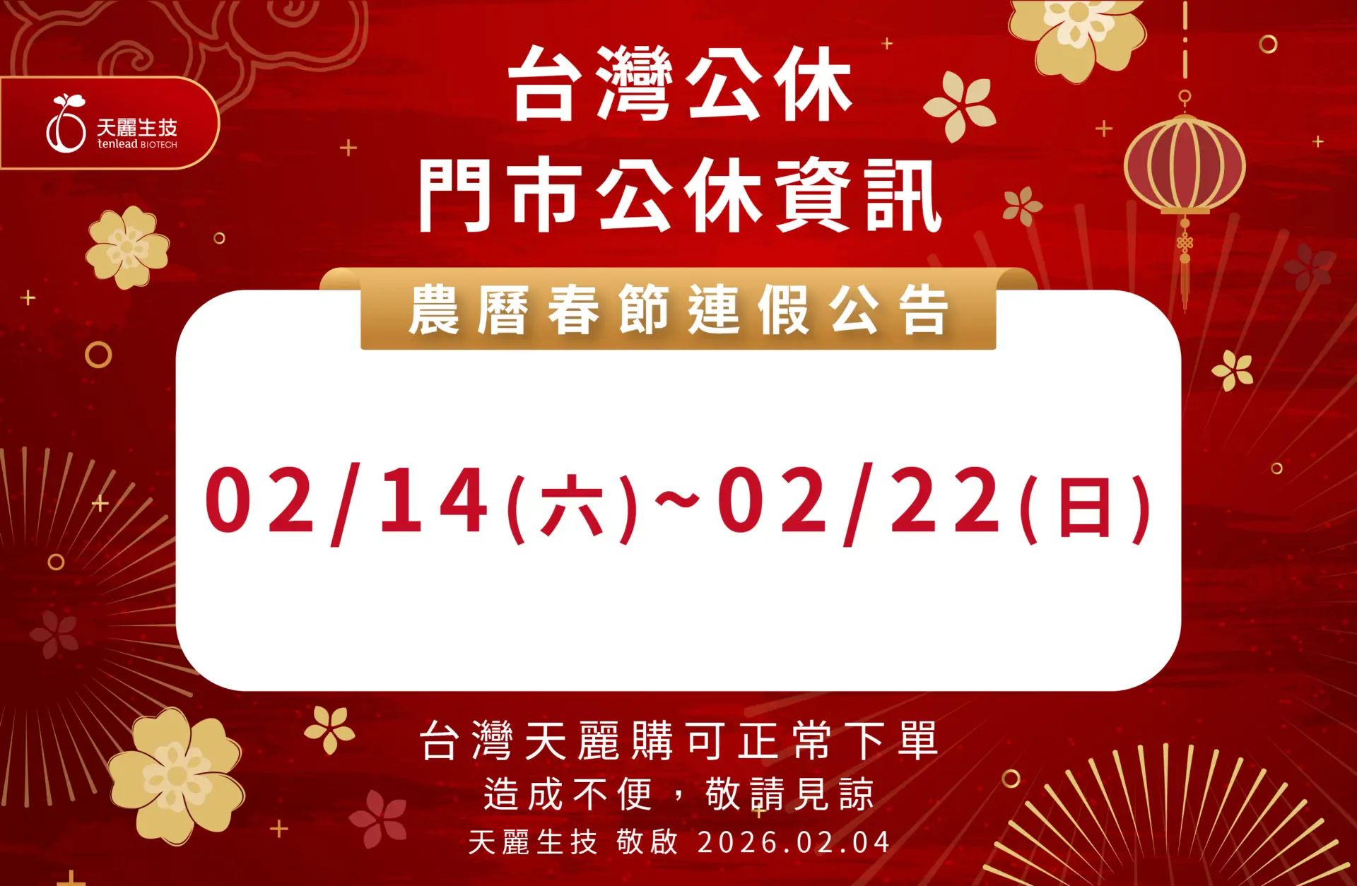 2026年農曆春節連假公告