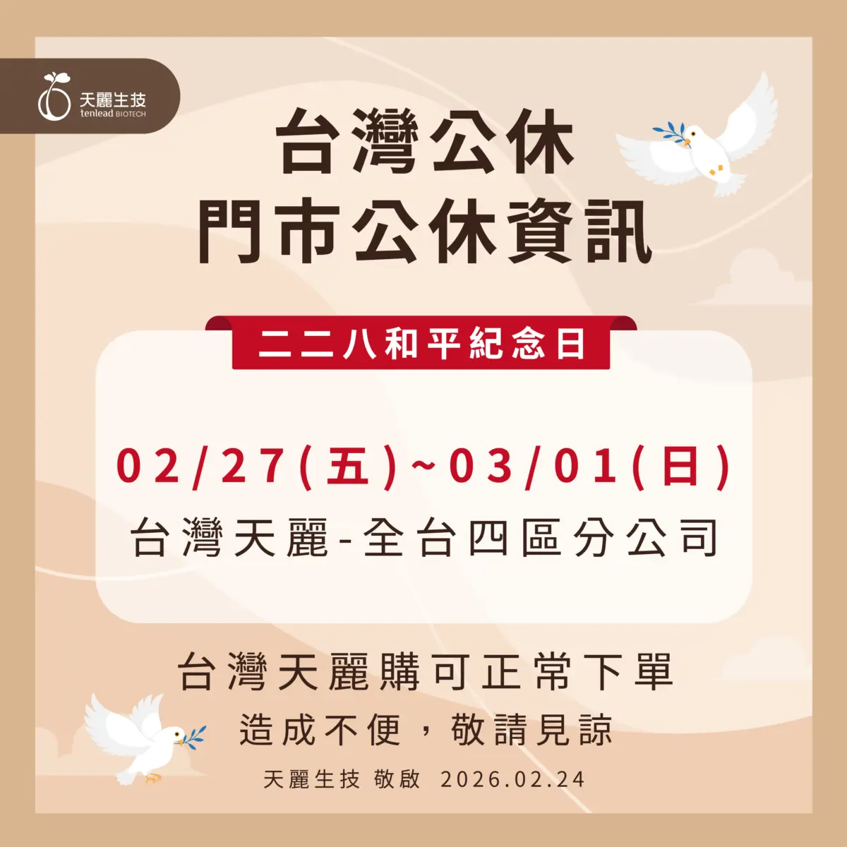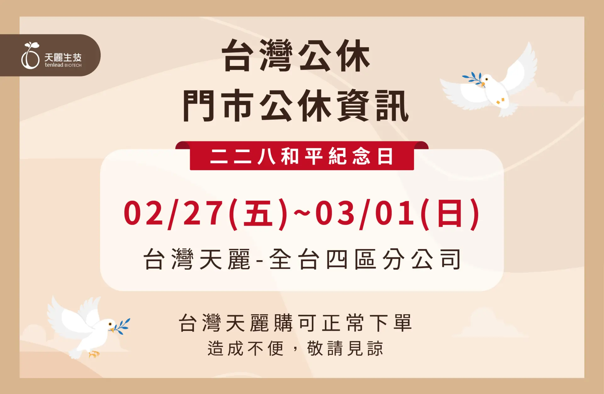 二二八和平紀念日休假公告